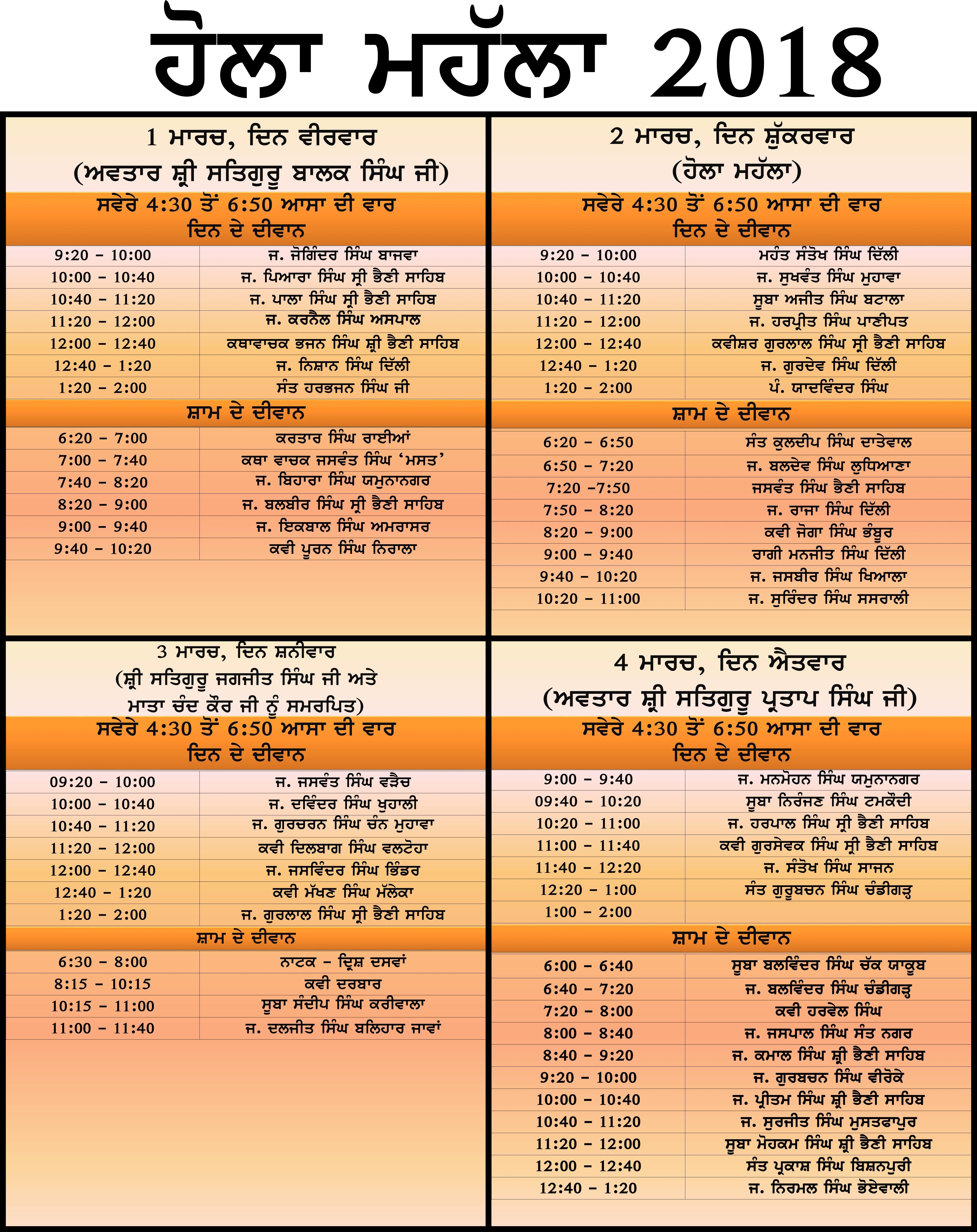 Holla mohalla 2018, time table