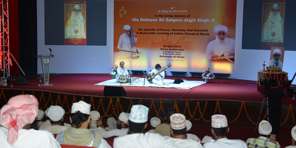 ਮਸਕਟ (ਓਮਾਨ) ਵਿਖੇ ਸ੍ਰੀ ਸਤਿਗੁਰੂ ਜਗਜੀਤ ਸਿੰਘ ਜੀ ਦੀ ਪਿਆਰੀ ਯਾਦ ਵਿਚ ਭਾਰਤੀ ਸ਼ਾਸਤਰੀ ਸੰਗੀਤ ਦੀ ਇਕ ਸ਼ਾਮ ਦੇ ਆਰੰਭ ਸਮੇਂ ਸ੍ਰੀ ਸਤਿਗੁਰੂ ਉਦੈ ਸਿੰਘ ਜੀ ਦੀਪ ਪ੍ਰਵਜਿਲ ਕਰਕੇ ਆਰੰਭ ਕਰਦੇ ਹੋਏ (26-4-2013)