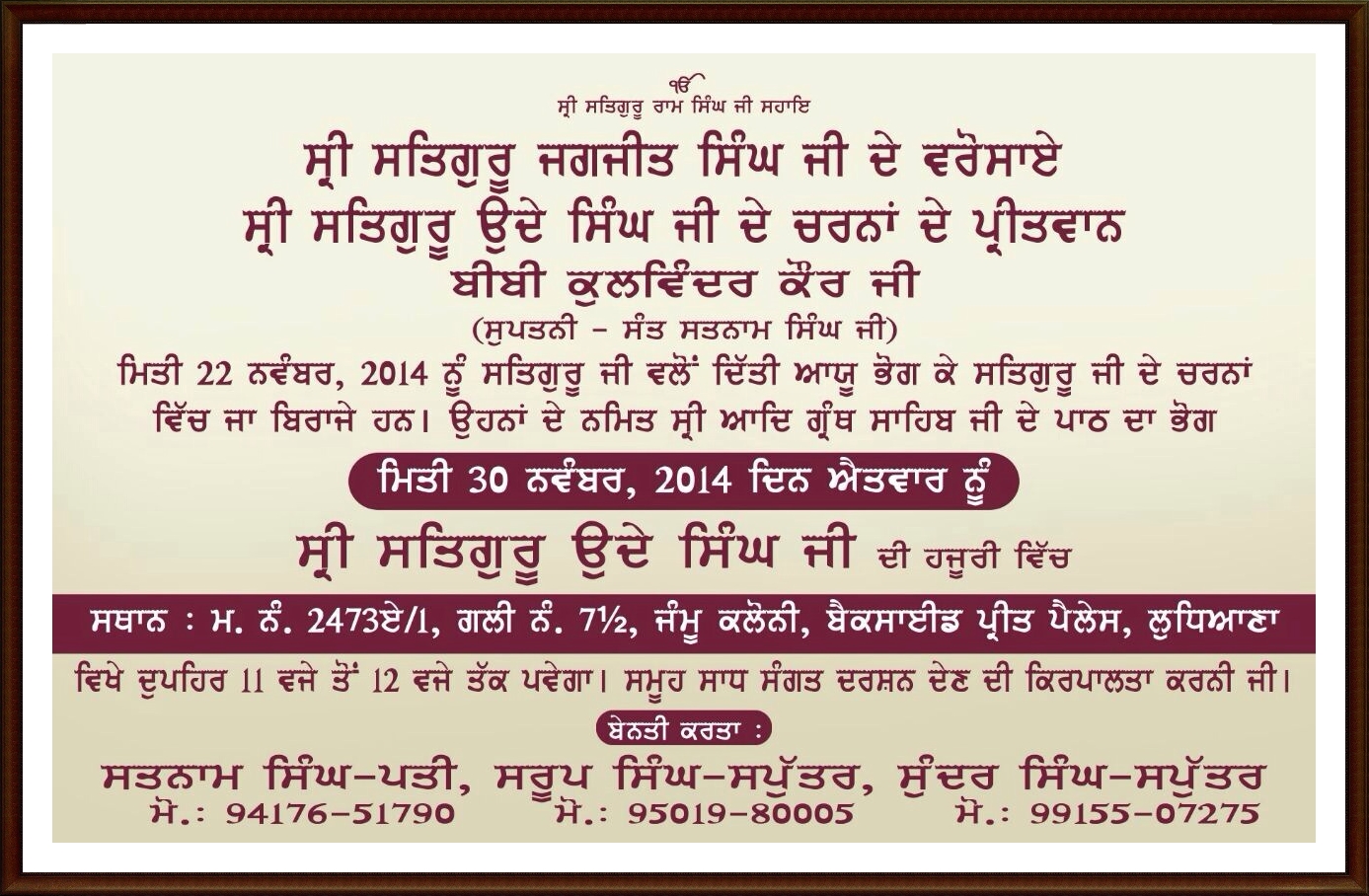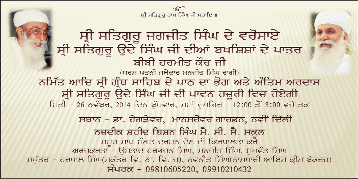 Bhog ceremony of Mata Pyar Kaur ji 28-11-2014 at Sri Jivan Nagar